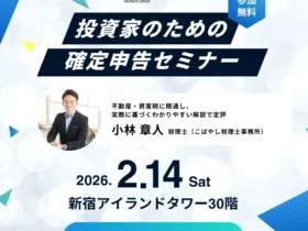 木下不動産が2026年2月14日(土)に開催する、不動産投資家向けの無料確定申告セミナーについてご紹介します。税理士の小林章人氏が登壇し、確定申告の流れや経費、減価償却など、つまずきやすいポイントをわかりやすく解説。初心者でも安心して参加できる内容です。