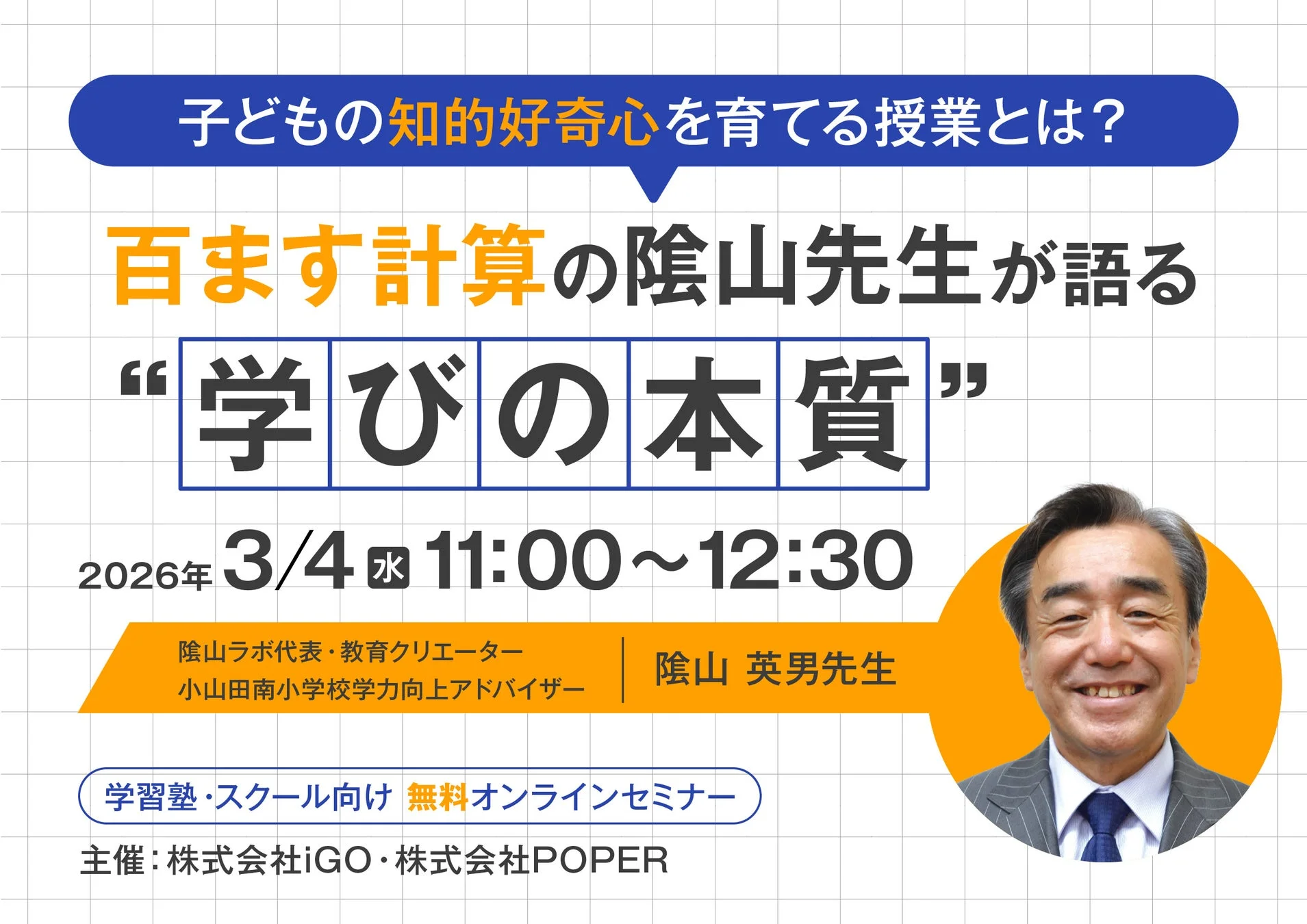 「百ます計算」の隂山英男氏が伝授!子どもが“自ら学ぶ”授業を作るヒントをオンラインセミナーでゲットしよう!