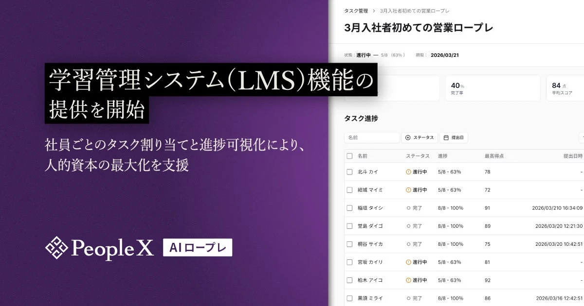 「PeopleX AIロープレ」に学習管理システム(LMS)機能が新登場!社員の成長をしっかりサポート