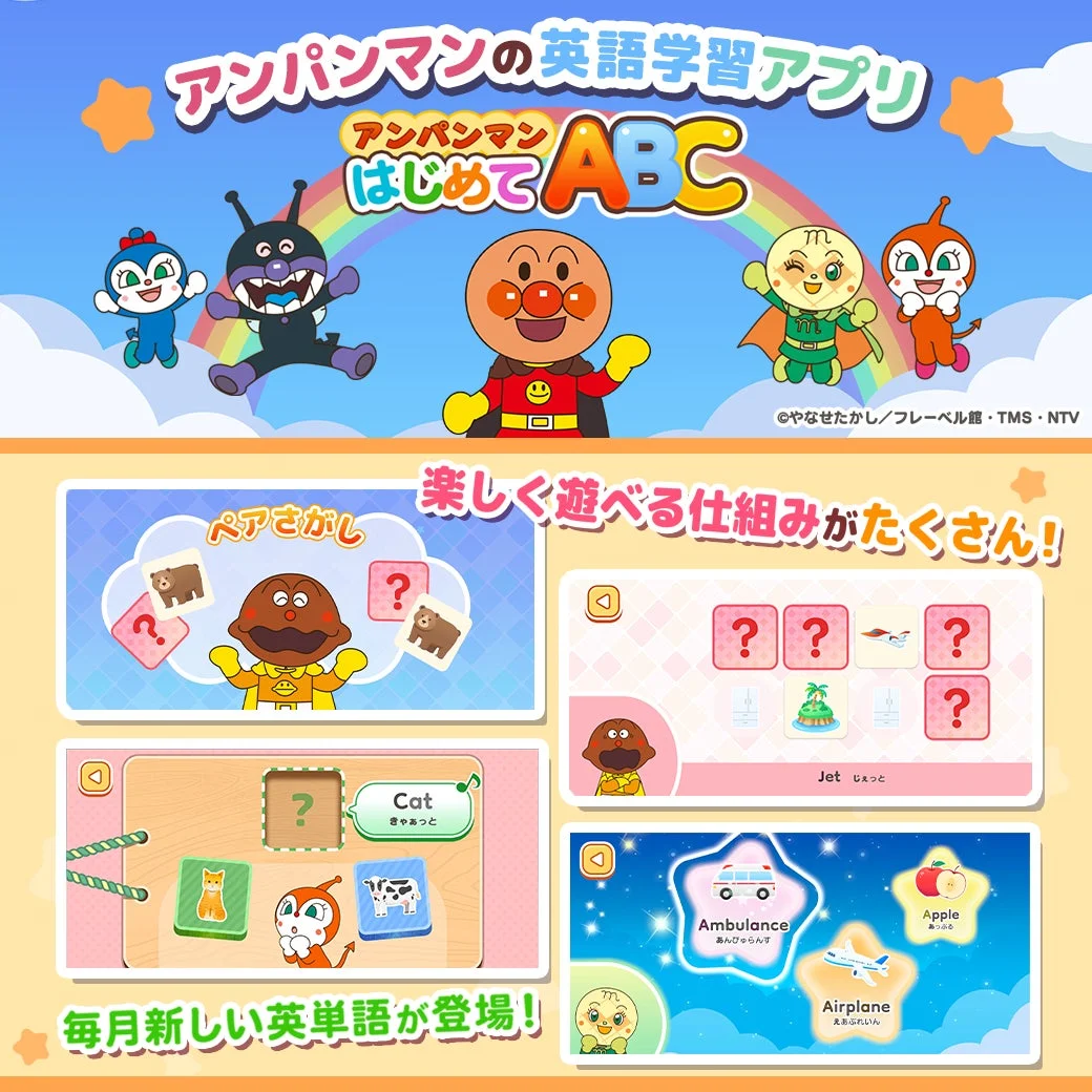 アンパンマンと楽しく英語を学ぼう!アプリ「はじめてABC」に新ゲーム「ペアさがし」が登場
