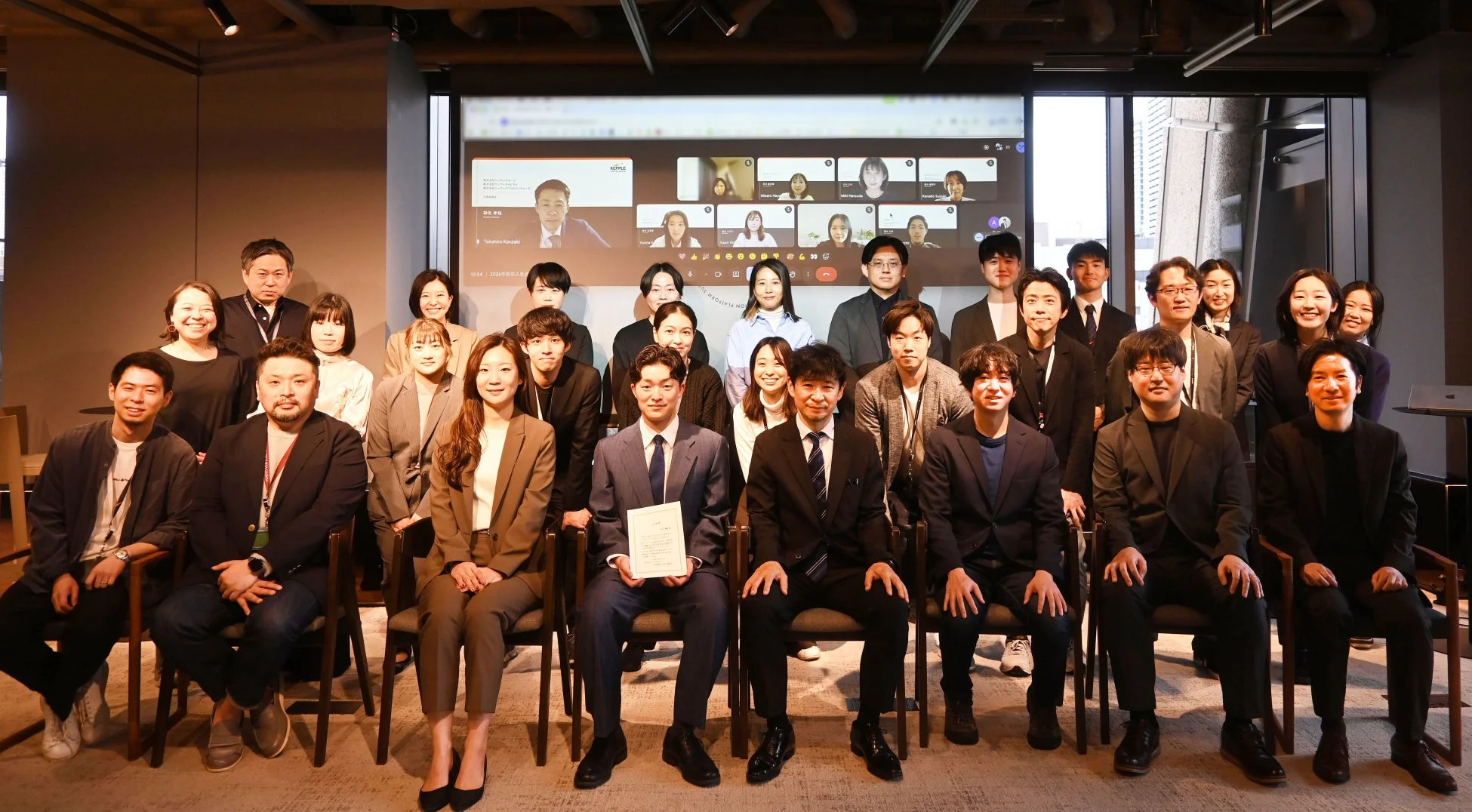 入社証書が授与された後、新入社員からは「ケップルの一員となることに喜びと身の引き締まる思いを感じている。この会社で働くことをチャンスと捉え、多くを吸収し、早くチームに貢献できるように成長したい」と、喜びと力強い決意が表明されました。セレモニーの最後には、オンライン参加者も含めた全員で記念撮影が行われ、新たな門出を祝いました。