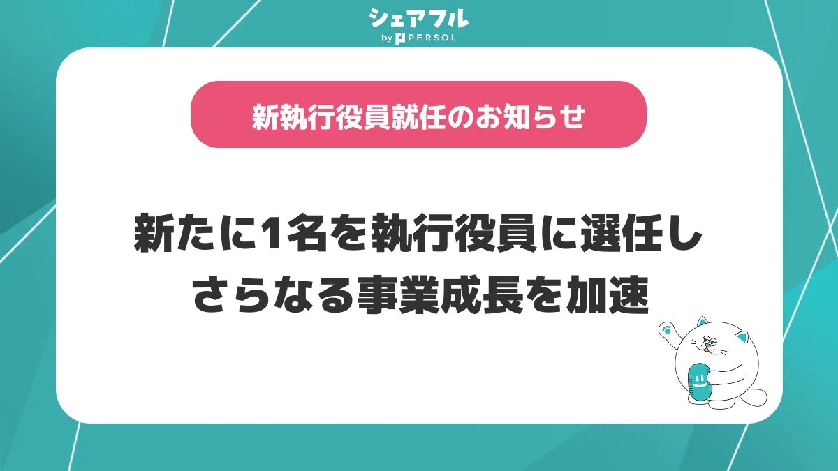 「シェアフルが掲げるミッション『誰もの「はたらく」をひろげ、新しい「はたらく」をつくる』のもと、事業成長をさらに加速させるため、今回新たに執行役員を選任しました。