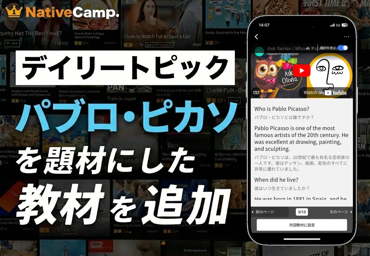 ネイティブキャンプでアートと英語を同時に学べる!「パブロ・ピカソ」新教材が登場