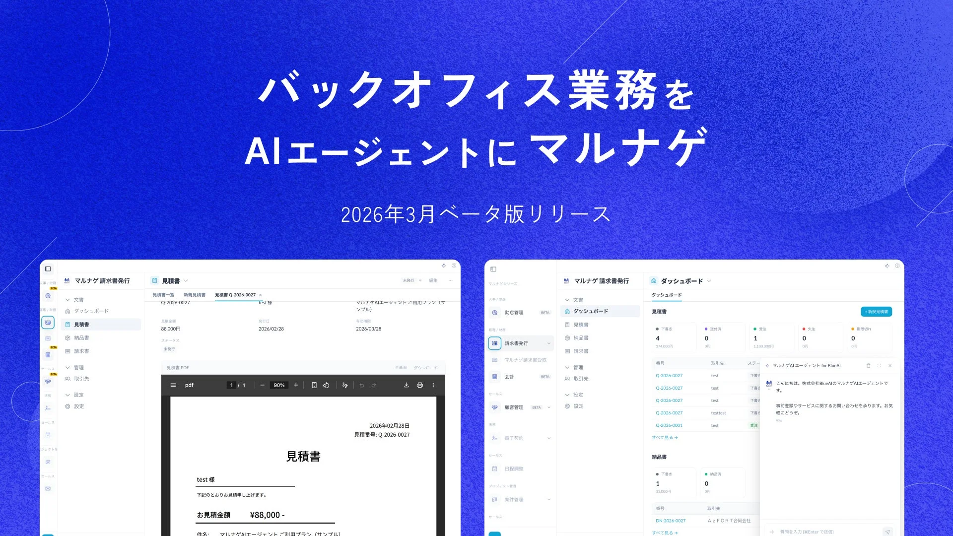 バックオフィス業務がAIで劇的に変わる!BlueAI「マルナゲAIシリーズ」で12業務をチャットで一括管理