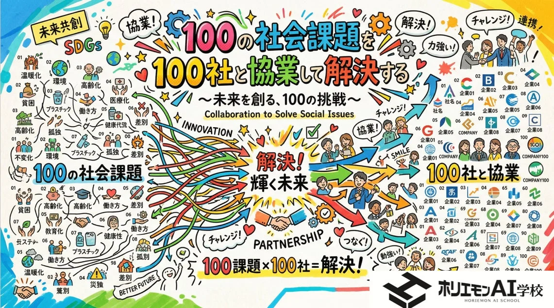 AI研修やコンサルティングを手がけるホリエモンAI学校が、「100人の経営者と100個のAI事業を作り100の社会課題を解決するプロジェクト」(通称「100プロジェクト」)をスタートさせました!