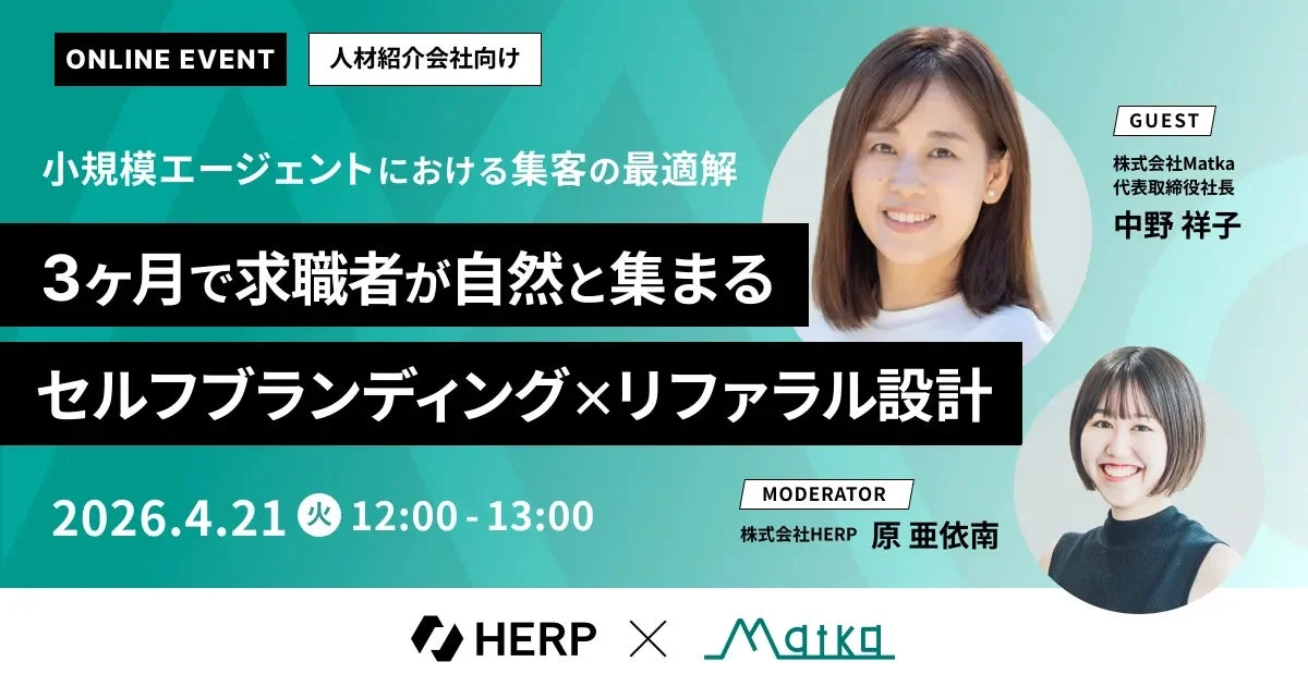 Matkaは、リファラルを軸にした集客設計で年間1,200名もの集客を実現した実績を持つ中野祥子氏が登壇するオンラインセミナーを開催します。小規模エージェントが「明日から使える」具体的なノウハウが満載です。