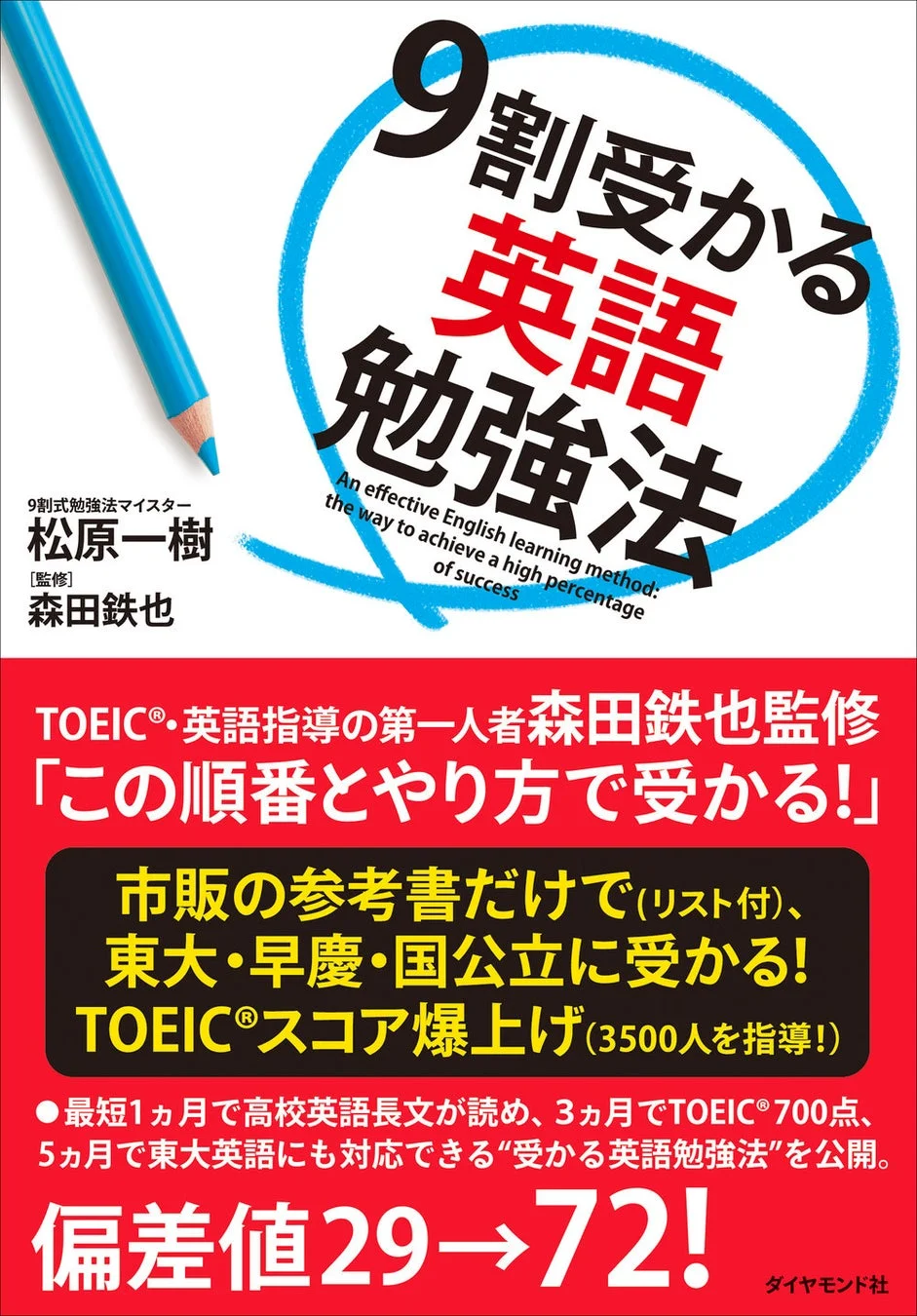 そんな悩みを解決してくれる英語学習の戦略書、『9割受かる英語勉強法』(松原一樹 著、森田鉄也 監修、ダイヤモンド社 刊)が、2026年4月22日に発売されるんだ!この本があれば、高額な教材や授業は一切不要。市販の参考書だけで、東大・早慶・国公立合格はもちろん、TOEIC®スコアの爆上げまで実現できるというから驚きだね。