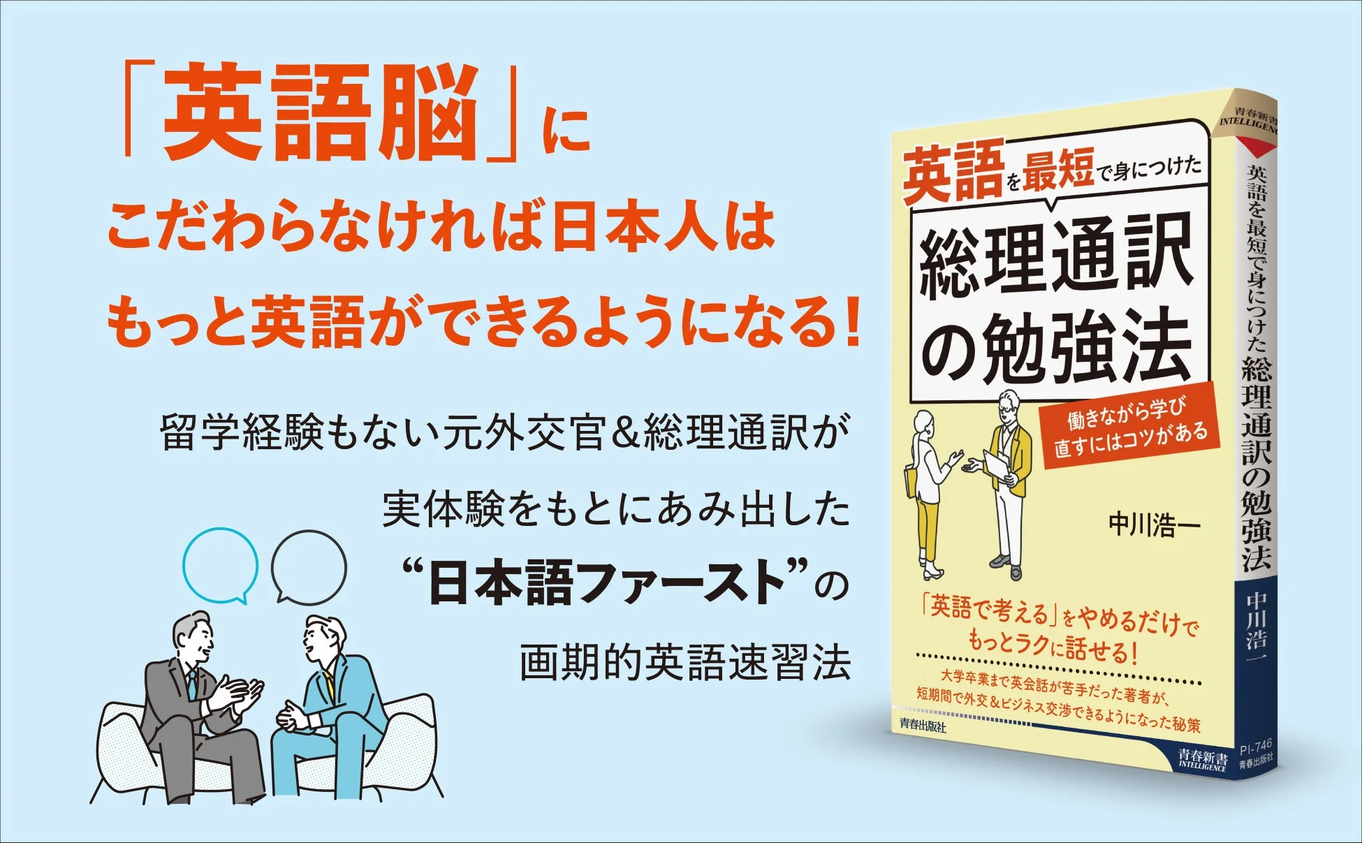 これまでの日本の英語教育では、「英語を英語で考える=英語脳」を身につけることが重視されてきました。しかし、本書の著者である元外交官・総理通訳の中川浩一氏は、この「英語脳」は不要だと断言しています。日本人なら「日本語脳」を上手に使いこなすことで、誰でも英語をマスターできるというのです。