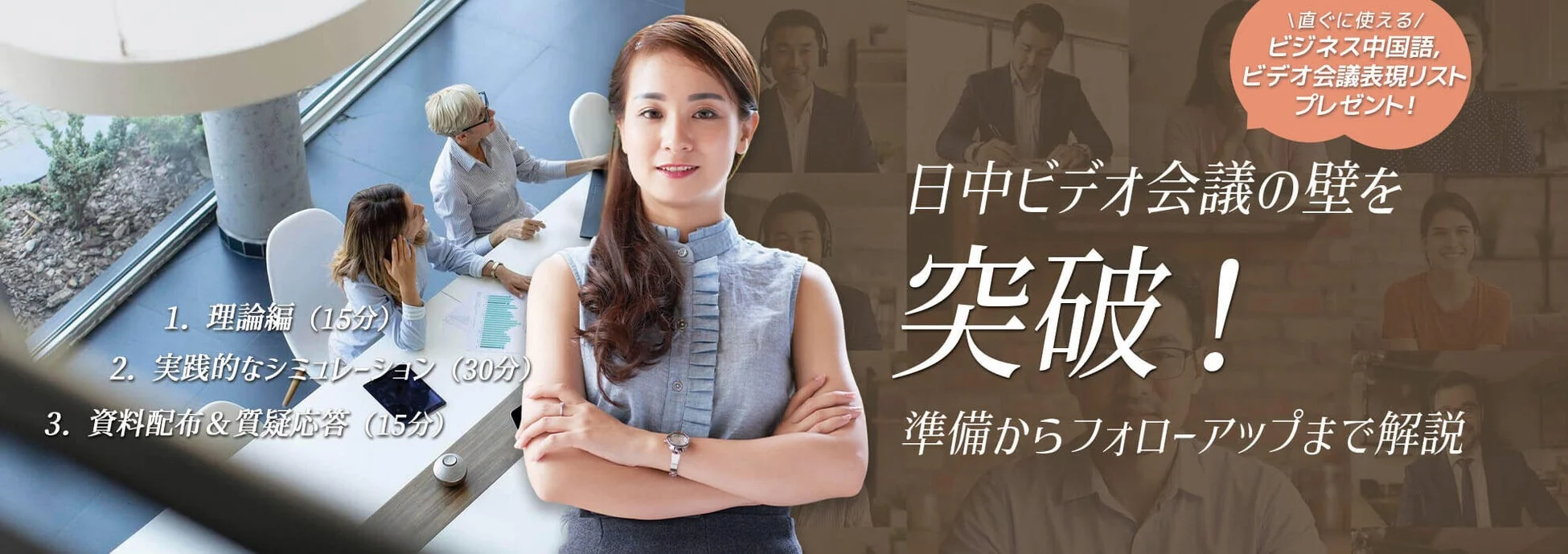 このセミナーは、日本語と中国語を交えたビデオ会議をテーマにした60分間の集中ワークショップです。中・上級者向けのビジネス中国語会話に特化しており、会議の準備から進行中、そしてフォローアップに至るまで、欠かせない中国語表現とビジネスロジックを習得できます。