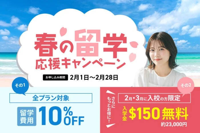 株式会社QQEnglishが、2026年の春留学シーズンに向けて、2月限定で「春のセブ島留学応援キャンペーン」を実施しています。留学費用10%OFFと入学金免除という、初めて留学に挑戦する人にも嬉しい特典が用意されていますよ!