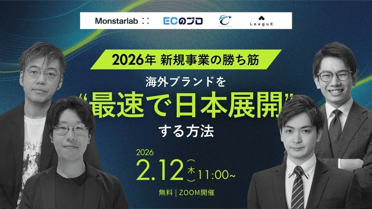 そこで注目されているのが、すでに海外で成功しているブランドを日本向けに展開する「高確度・最速型」の新規事業モデルです。初期投資を抑えつつ、店舗とECの両方でスピーディに事業を立ち上げる具体的な方法を学べるオンラインセミナーが、2026年2月12日(木)に開催されます!