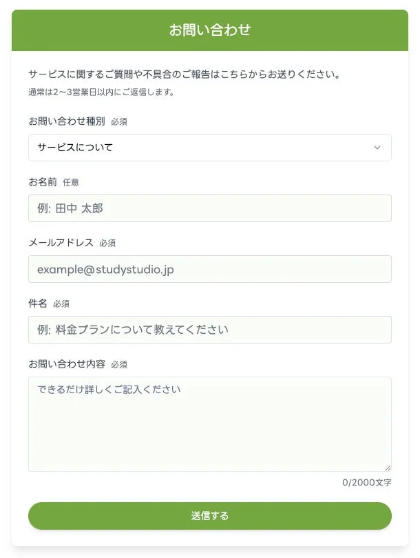 今回のアップデートで、アプリ内に専用のお問い合わせフォームが新設されたので、学習中や採点中でもアプリを離れることなく、すぐに問い合わせや不具合の報告ができるようになりました!