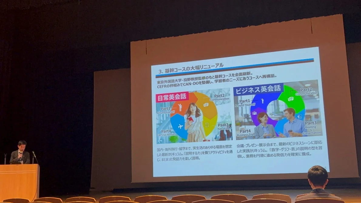 英語教育の国際標準指標であるCEFR(欧州言語共通参照枠)に基づき、産経ヒューマンラーニングは「日常英会話」と「ビジネス英会話」の基幹コースをリニューアルしました。このリニューアルでは、CEFRに最適化された学習カリキュラムの構造や、具体的な開発プロセスが詳しく解説されました。