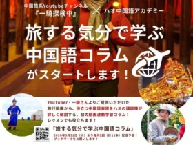YouTubeチャンネル『一騎探検中』とハオ中国語アカデミーが、中国旅行動画と連動した中国語学習コラム『旅する気分で学ぶ中国語コラム』をスタートします。動画で現地のリアルな中国語に触れ、コラムで詳しく解説されることで、実践的な中国語が楽しく学べますよ。