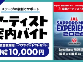 Kep1er、原因は自分にある。、Novelbright、Chevonなど豪華アーティストが出演する「JAL SAPPORO MUSIC EXPERIENCE 2026」で、ステージ裏からアーティストをサポートする特別な「超バイト」が募集されます。時給1万円に加え、当日のライブペアチケットなどの豪華特典も!