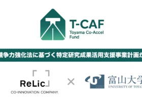 事業共創カンパニーのRelicと富山大学が連携して進める「Toyama Co-Accel Fund(T-CAF)」が、大学発スタートアップ支援に関する国の認定を取得しました。これにより、富山大学の研究成果を社会に広めるためのファンド組成が2026年6月に予定されています。 -