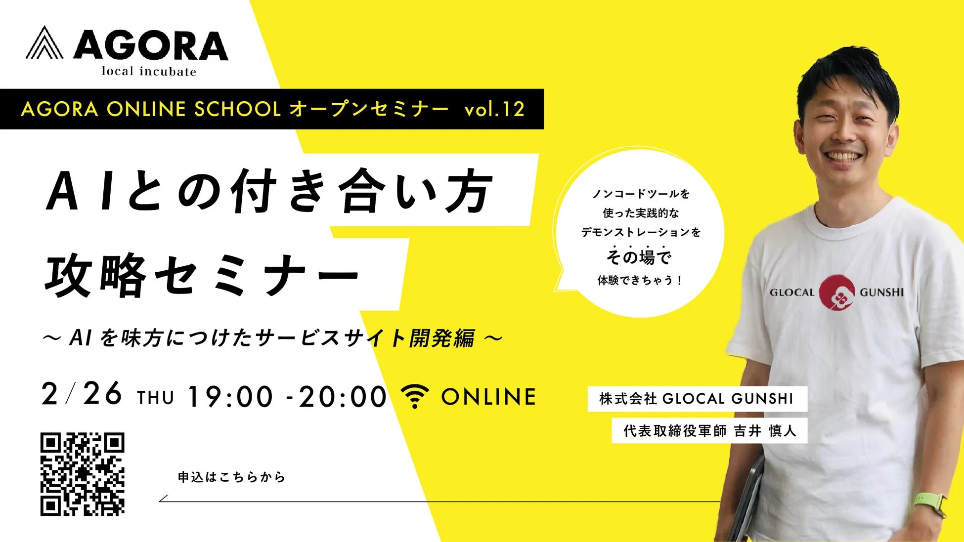講師を務めるのは、東京都認定インキュベーション施設で年間400件以上の起業相談を受け、300名以上の起業家にAIを活用した事業アドバイスを行ってきた吉井慎人氏です。初心者にも分かりやすく、AIをビジネスに活かすヒントを教えてくれます。