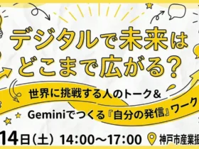 神戸市が主催する学生向けデジタル人材育成プロジェクト「こうべデジタル活動部」が、全7回シリーズの集大成として最終回イベントを2026年3月14日(土)に開催します。世界に挑戦する実践者のトークと、Google Geminiを使ったポートフォリオ作成ワークを通じて、自身の強みを世界へ発信する方法を学びます。