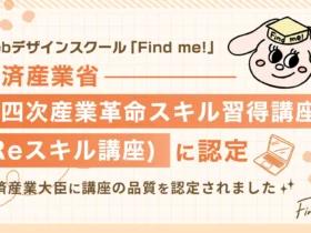 Webデザインスクール「Find me!」の4つの講座が、経済産業省の「Reスキル講座」に認定され、さらに専門実践教育訓練給付金の対象になりました。これにより、受講費用の最大70%が給付されるチャンス!国の「お墨付き」を得たFind me!で、あなたの新しいキャリアをスタートしませんか?