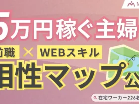 「スマホで簡単」な在宅ワークに飛び込んで失敗していませんか?多くの主婦が月5万円を稼ぎ続けるための鍵は、実は「前職の経験」をWebスキルに変換することにありました。在宅ワーカー226名の調査から、成功するスキル選びの共通点と、あなたの経験を活かせるWebスキルの相性マップをご紹介します。