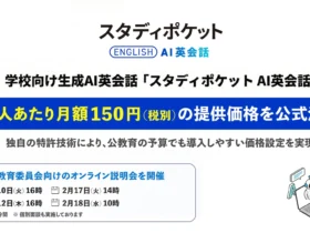スタディポケット株式会社が、学校向け生成AI英会話「スタディポケット AI英会話」の提供価格を一人あたり月額150円(税別)に決定しました。独自の特許技術でコストを大幅に抑え、公立学校の予算でも導入しやすい価格を実現。2月にはオンライン説明会も開催されます。