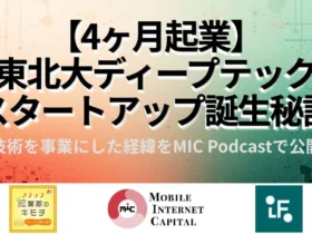 モバイル・インターネットキャピタル株式会社(MIC)が、投資先であるNanoFrontier株式会社の創業秘話に迫る特別シリーズを公式Podcast「スナック起業家のキモチ」で配信開始しました。大学発の研究技術がどのように事業化されたのか、そのリアルなプロセスとVCの役割が語られます。 -
