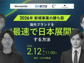 2026年2月12日に、初期投資を抑えながら海外ブランドを日本でスピーディに展開する新規事業のオンラインセミナーが開催されます。4社が共催し、EC立ち上げから人材戦略まで実践的なノウハウが学べます。