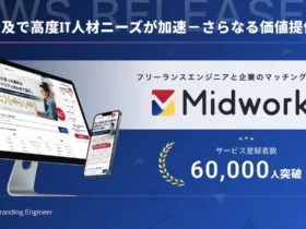 フリーランスエンジニアと企業をつなぐマッチングサービス「Midworks」が、登録ユーザー数60,000人を突破しました。DXやAIの進化で高まるIT人材のニーズに応え、フリーランスが安心して活躍できる環境を提供しています。