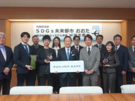 大田区の創業支援施設「六郷BASE」に入居するスタートアップ3社と運営会社ツクリエが、令和8年3月24日に鈴木晶雅大田区長を表敬訪問しました。各社のこれまでの素晴らしい実績と、今後の大田区における新産業創出への期待が語られました。