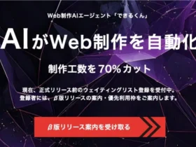 Web制作AIエージェント「できるくんAI Web制作」が3月に正式リリースされます。AIの力でWeb制作のディレクションから公開までを効率化し、制作期間やコストを大幅に削減できる画期的なサービスです。