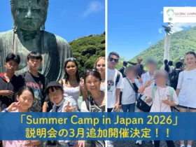 Global Learner’s Instituteが主催する宿泊型プログラム「Summer Camp in Japan 2026」の3月追加説明会が決定しました。日本にいながら国際色豊かな環境で世界基準の学びを体験できるこのキャンプで、子どもたちの「世界と未来に出会う夏」が始まります。