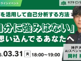 就労移行支援事業所・キズキビジネスカレッジ(KBC)が、2026年3月31日に「AIを活用した自己分析」をテーマにした無料オンラインセミナーを開催します。自分の経験を強みとして認識できていない方のために、AIを「頼れる右腕」として活用し、客観的に強みを抽出する方法を学べます。