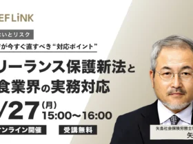 2024年11月に施行された「フリーランス保護新法」は、飲食店業界にも大きな影響を与えています。特に調理やメニュー開発をフリーランスに依頼している場合、知らずに法令違反をしてしまうリスクも。株式会社シェアダインが開催する無料オンラインセミナーで、飲食店の皆さんが安心して外部パートナーと取引するための「正しいルール」を学び、トラブルを未然に防ぎましょう!