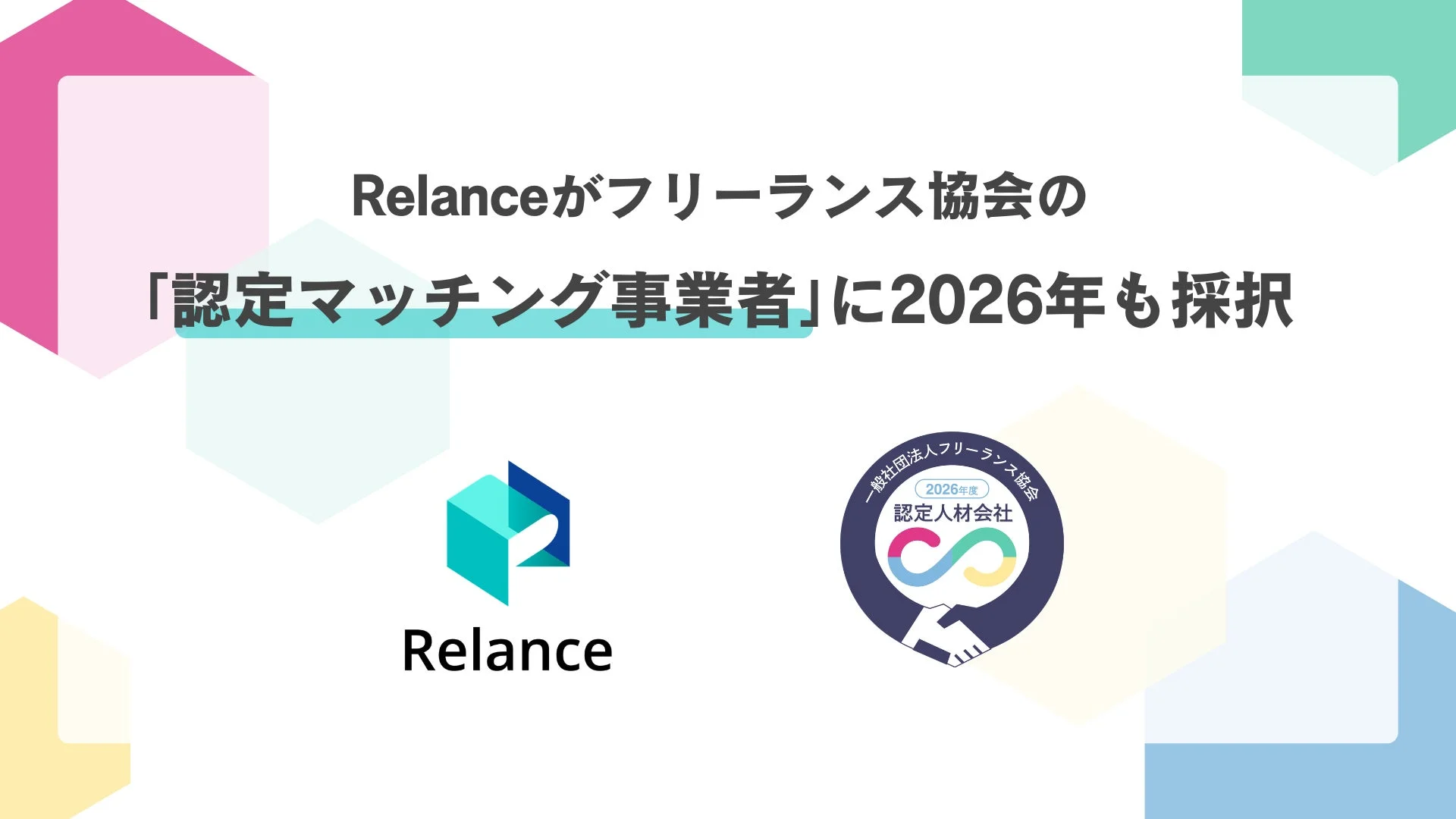 ITエンジニアの働き方がもっと自由に!「Relance」がフリーランス協会の認定マッチング事業者に今年も採択!