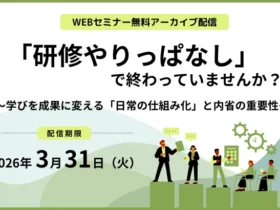 「研修はしたけれど、成果につながっているか分からない…」そんな悩みを抱える企業や担当者の方へ。学びを実際の成果に変えるための「日常の仕組み化」と「内省」の重要性を解説する無料WEBセミナーが、2026年3月31日までアーカイブ配信されています。