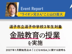 金融・起業スクール「Financial Free College」を運営する山口貴大氏(ライオン兄さん)が、逗子市立逗子中学校で3年生を対象に金融教育の無料講演会を実施しました。2コマ90分の授業で、インデックス投資や複利の仕組み、2027年1月開始見込みの「こどもNISA」について実践的な内容が解説されました。