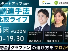 起業したばかりのあなたに朗報!3月25日(水)にオンラインで開催される「資金調達手法比較ライブ」では、日本政策金融公庫、補助金支援のイチドキリ、株式投資型クラウドファンディングのFUNDINNOが登壇。創業期・シード期の経営者が知っておきたい資金調達の選び方を、専門家が分かりやすく解説します。参加無料なので、このチャンスをお見逃しなく!