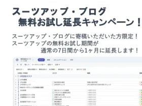 AIタスク管理・プロジェクト管理ツール「スーツアップ」が、ブログへの体験記事寄稿で無料お試し期間を1ヶ月に延長するキャンペーンを実施中です。チームのタスク管理をもっと効率的にしたい方は必見!