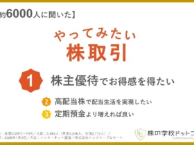 全国約6000人を対象にした意識調査で、「やってみたい株取引」のリアルな声が明らかに!株主優待や高配当株の人気ぶり、さらに投資未経験者の意外な関心事まで、最新の調査結果をカジュアルに解説します。