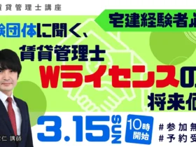 「資格の学校TAC」が、宅地建物取引士の資格を持つ方や不動産業界でのキャリアアップを目指す方に向けて、賃貸不動産経営管理士に関する無料オンラインセミナーを開催します。試験団体担当者をゲストに迎え、資格制度の最新情報や宅建士との親和性について解説されるので、今後のキャリアを考える上で役立つ情報が満載です。