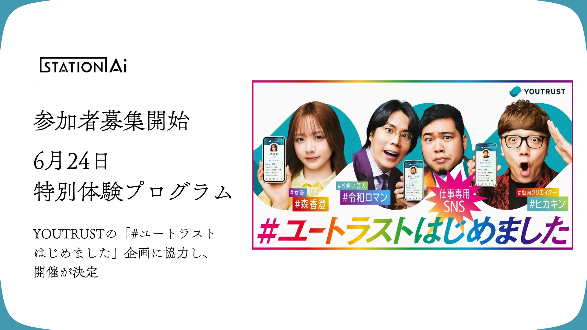 STATION AiがYOUTRUSTとコラボ!6月24日に起業体験プログラム開催